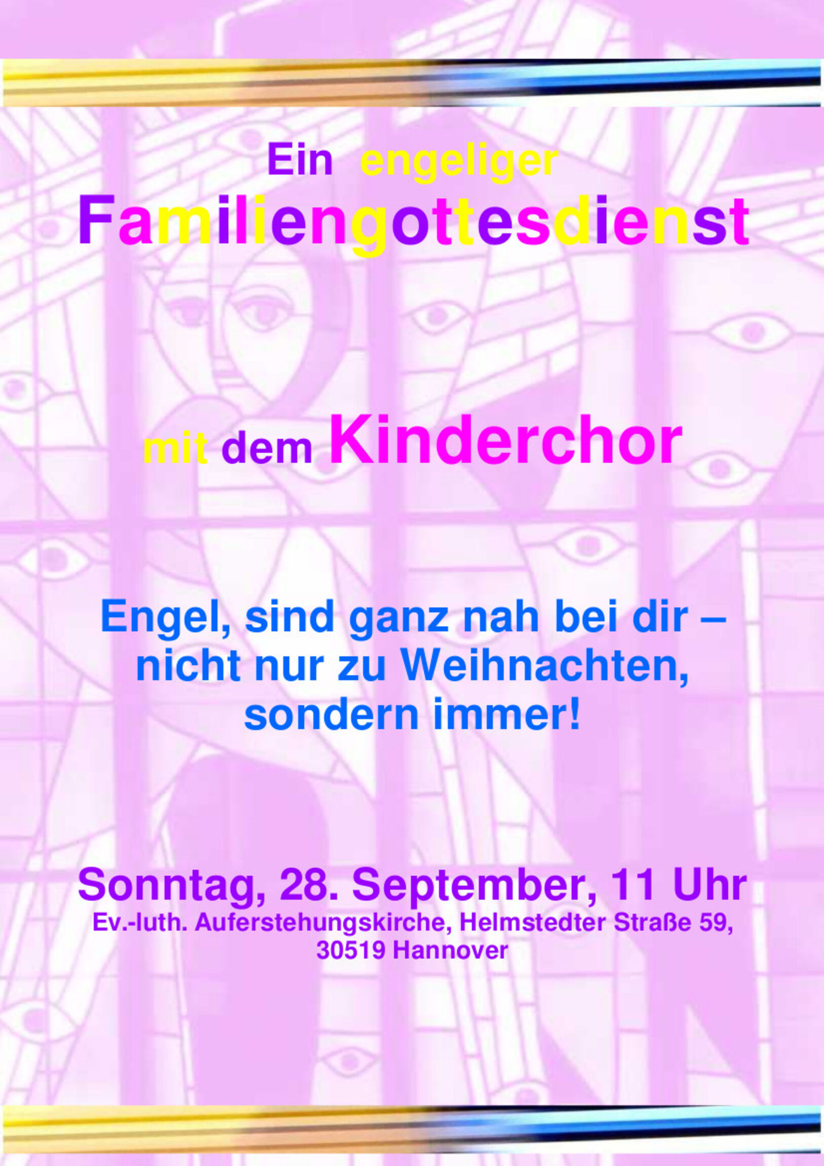 Am Sonntag, 28. September, 11 Uhr feiern wir einen bunten herbstlichen, engeligen Familiengottesdienst mit dem Kinderchor!
