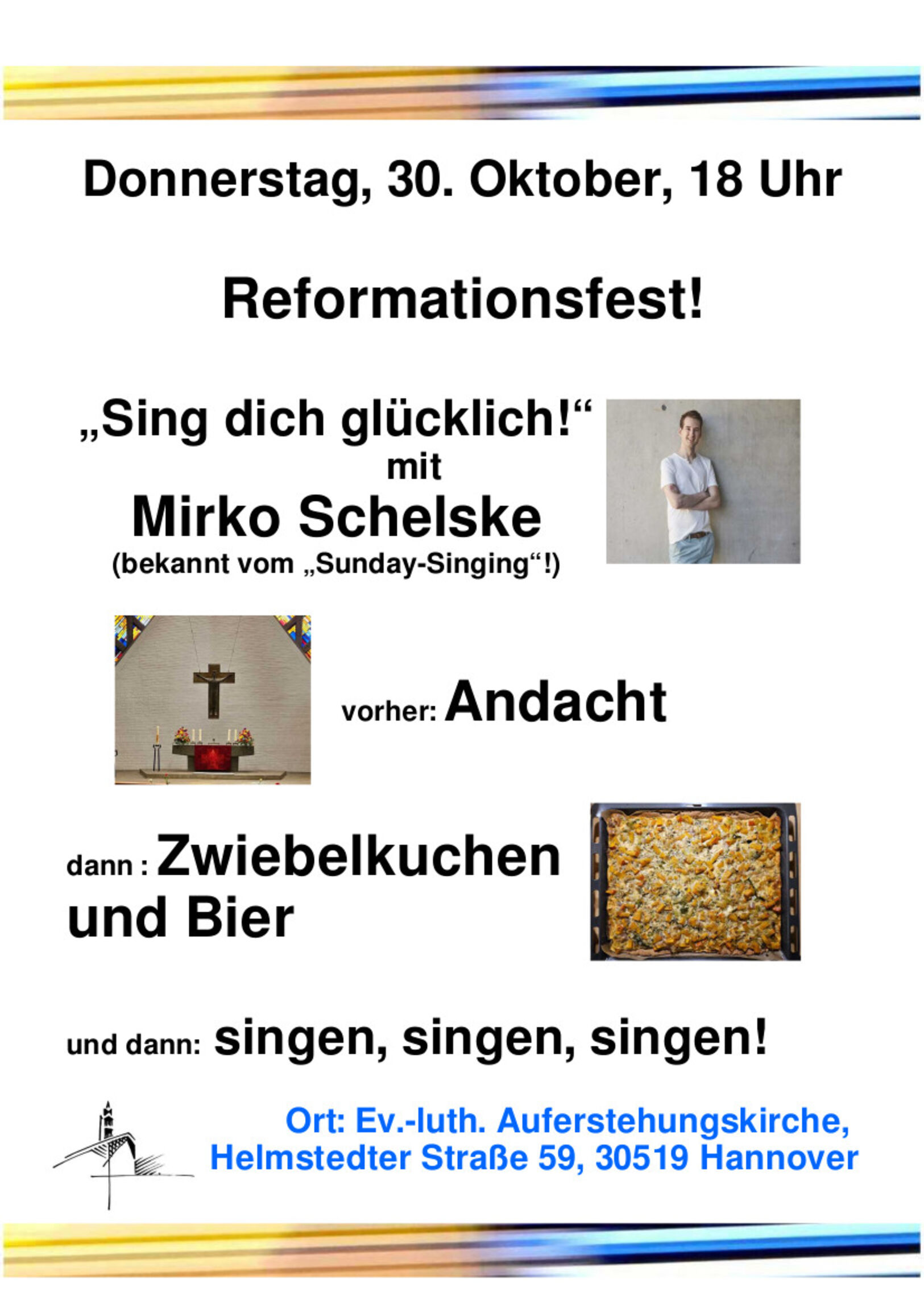 Am 30. Oktober feiern wir ab 18 Uhr unser Reformationsfest mit Mitsingkonzert!